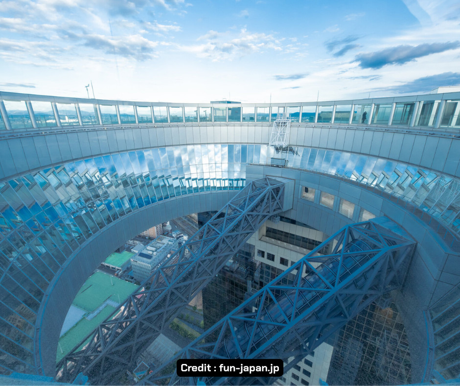 ตึกอุเมดะสกาย หนึ่งในจุดที่ไม่ควรพลาด แลนด์มาร์กสุดล้ำที่โดดเด่นด้วยดีไซน์ตึกแฝดเชื่อมต่อกันด้านบน พร้อมจุดชมวิวชื่อดังอย่าง Floating Garden Observatory สร้างขึ้นในช่วงสิ้นสุดยุคเศรษฐกิจเฟื่องฟู โดยมีสถาปนิกที่มีชื่อเสียงอย่างฮิโรชิ ฮาระเป็นผู้ออกแบบ ที่นี่จะได้สัมผัสวิวเมืองโอซาก้าแบบ 360 องศา ไม่ว่าจะเป็นช่วงพระอาทิตย์ตกที่แสงสีทองสาดส่องทั่วเมือง หรือช่วงกลางคืนที่เต็มไปด้วยแสงไฟระยิบระยับ บรรยากาศโรแมนติก เหมาะกับทั้งสายถ่ายรูปและคนที่อยากเก็บโมเมนต์ดีๆระหว่างทริป