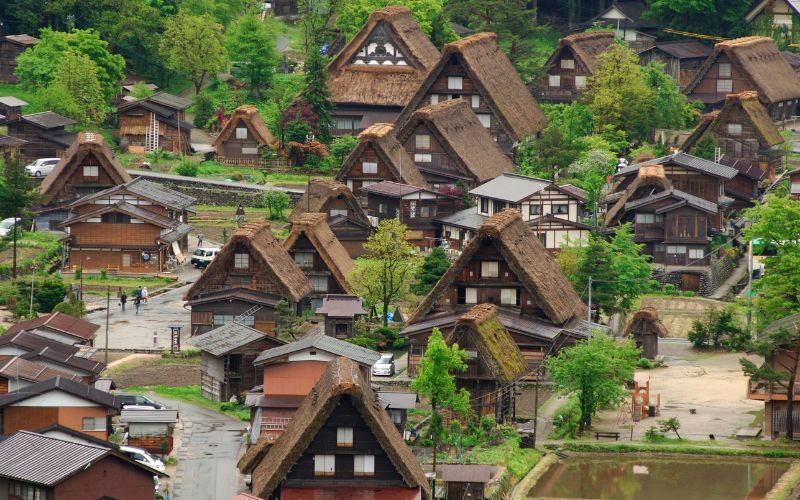6. หมู่บ้านชิราคาวะโกะ (Shirakawa-go) – หมู่บ้านมรดกโลก 🏘️❄️🍃